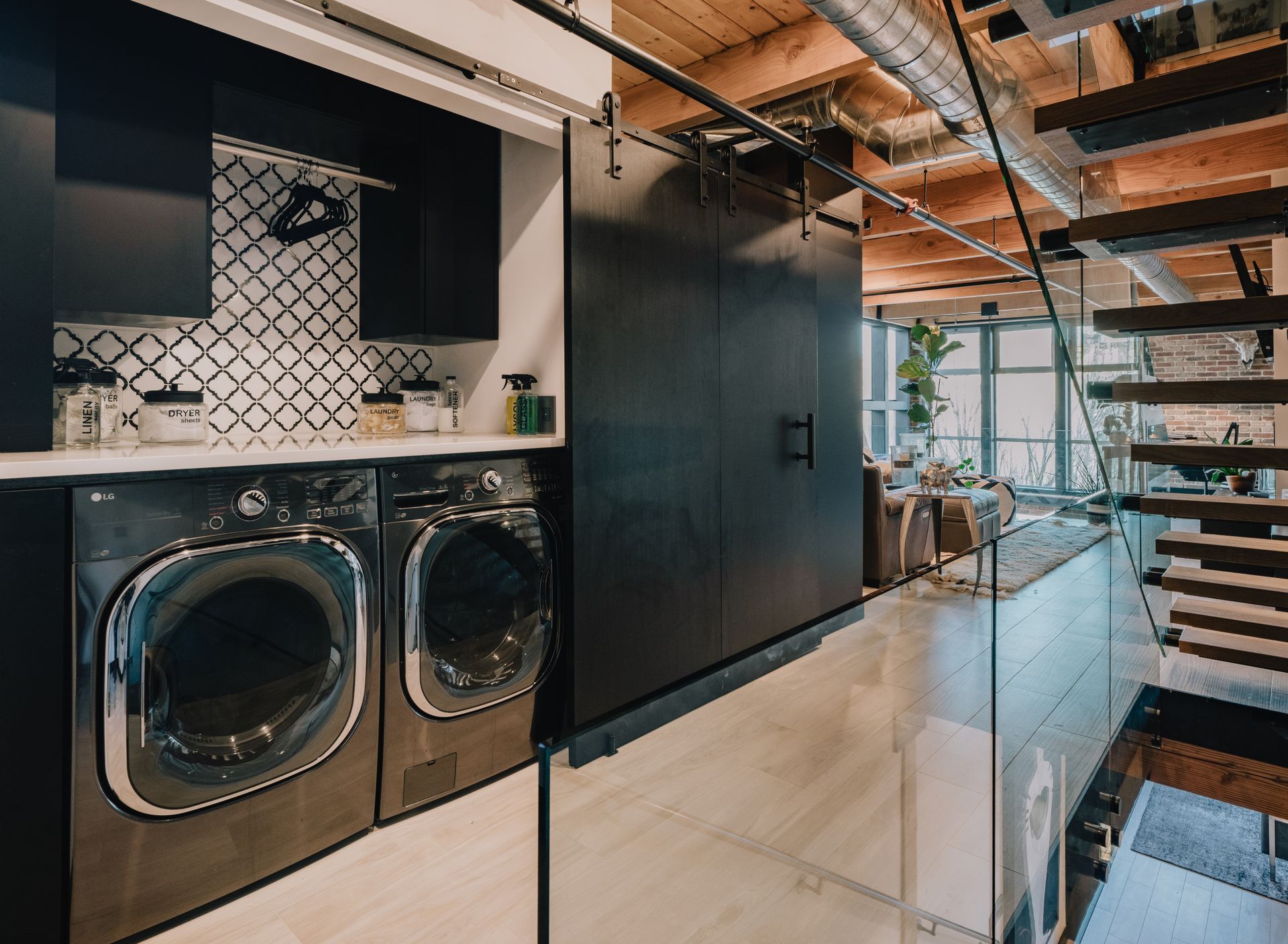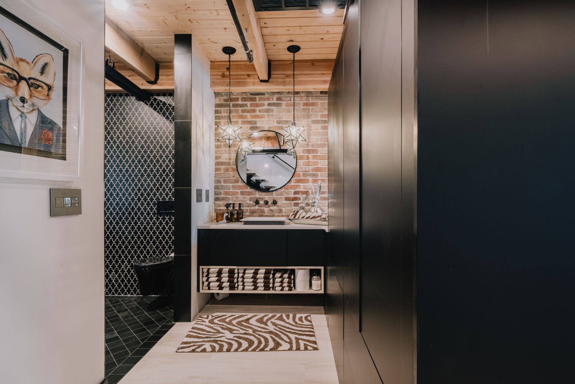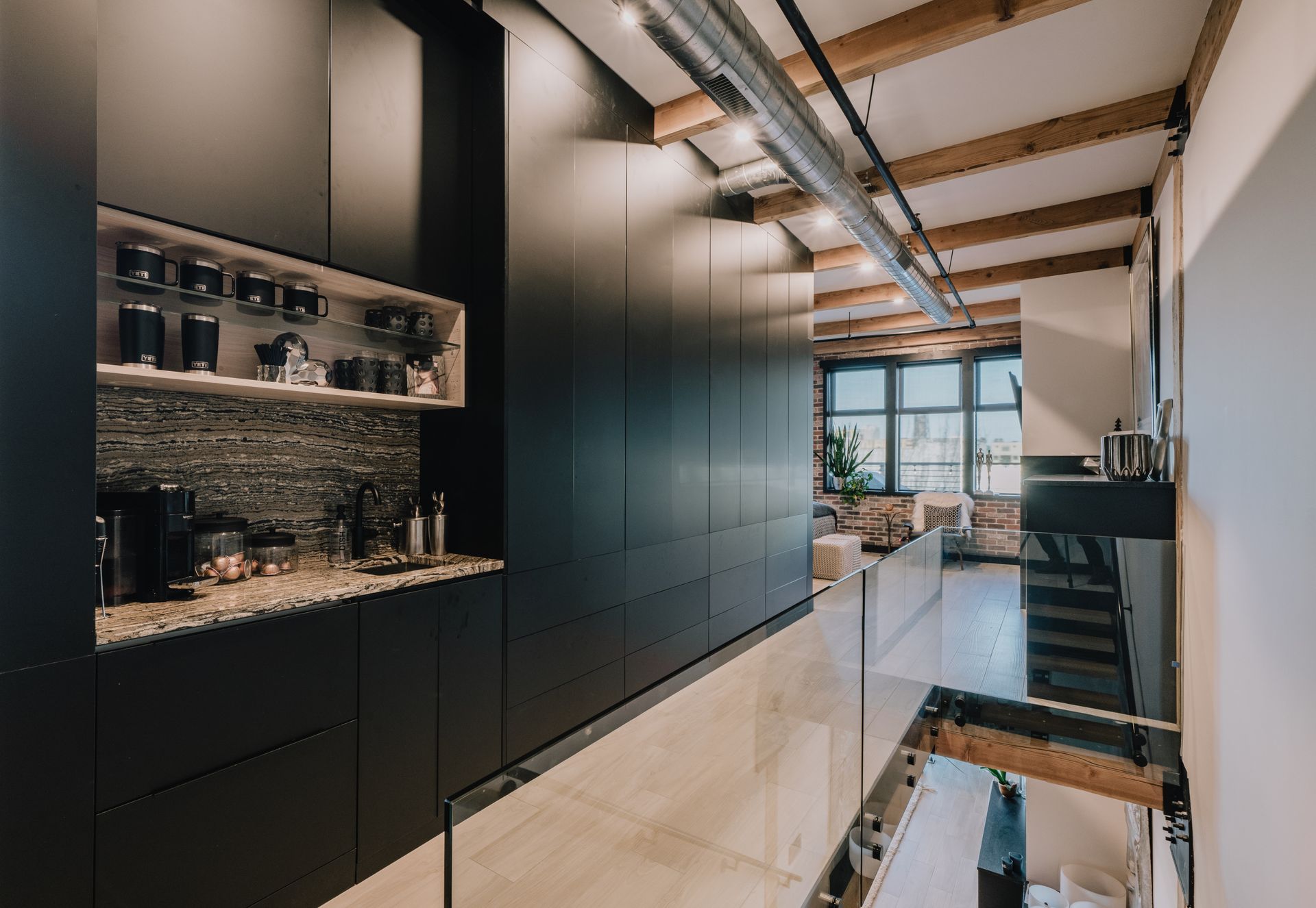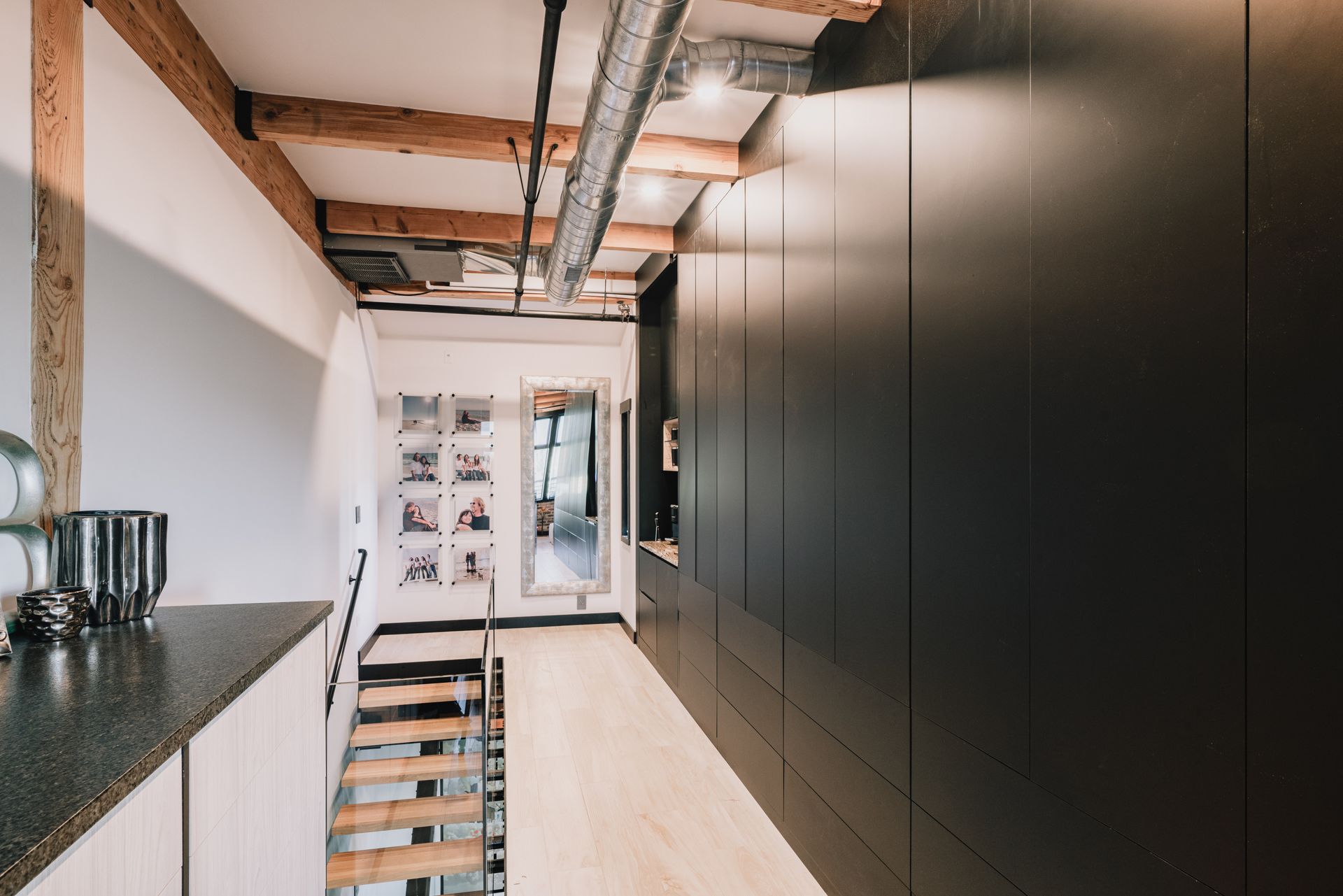 With its loft-style design spanning three levels, fine finishes such as brick, wood, and tile, as well as sleek black cabinetry, this condo is sure to impress. The floating oak stairs and glass railings add a modern touch and enhance the open, spacious feel of the space. It's no wonder this loft would be considered one of Portland's sexiest condos, combining elegance with contemporary design elements. The first level of this exquisite condo offers a gourmet kitchen, perfect for culinary enthusiasts. With its beautiful pendant lighting casting a warm glow over the space, the kitchen features sleek black cabinetry built by a master cabinet artisan, high-end appliances, and luxurious and unique countertops. Adjacent to the kitchen is a cozy fireplace, adding ambiance and charm to the living area. The spacious dining area is ideal for hosting gatherings, and it seamlessly flows onto one of two decks, providing a perfect spot for outdoor entertaining or simply enjoying the views. Additionally, a large pantry offers ample storage space for kitchen essentials, with the convenience of a built-in microwave and extra storage options. Whether you're cooking up a feast or relaxing by the fireplace, this level of the condo combines functionality with style for a truly luxurious living experience. Ascend to the second level and be greeted by the grandeur of large wood beams juxtaposed with sleek steel accents. The floating den, ingeniously overhanging the area below, offers a unique perspective of the space. Step into the inviting family room adorned with a cozy fireplace, perfect for gatherings and relaxation. The full bathroom boasts stunning tile work and rustic brick accents, creating an ambiance of luxury and comfort. Marvel at the built-in cabinets featuring stone countertops, seamlessly integrating style and practicality. Tons of storage space ensures every item has its place, keeping the loft clutter-free and organized.